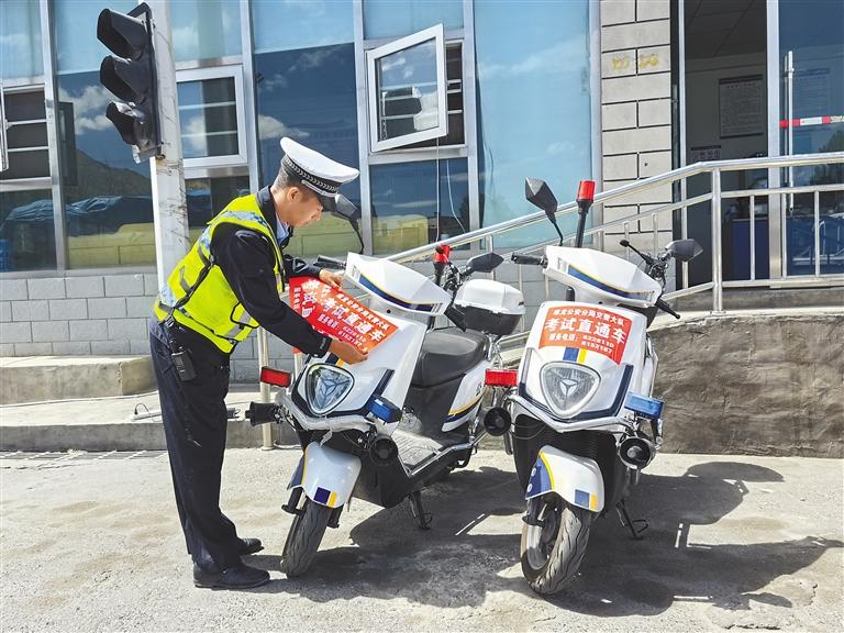 拉薩交警為護(hù)航高考做準(zhǔn)備。記者 鹿麗娟 攝