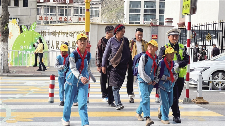 此外,拉薩交警還利用每日“護(hù)學(xué)崗”時(shí)間,主動(dòng)引導(dǎo)學(xué)生正確過馬路、認(rèn)識(shí)交通信號(hào)燈,提醒學(xué)生不在馬路上嬉戲、追逐打鬧,不乘坐三輪摩托車等不規(guī)范車輛,并向接送學(xué)生的家長(zhǎng)講解接送孩子途中應(yīng)注意的安全事項(xiàng),告誡學(xué)生家長(zhǎng)以身作則,杜絕橫穿馬路、闖紅燈等交通陋習(xí),共同營(yíng)造安全、暢通、文明和諧的道路交通環(huán)境?!拔覀児膭?lì)孩子們將學(xué)到的交通安全知識(shí)帶回家,充分發(fā)揮‘小手拉大手’作用,向家人宣傳道路交通安全知識(shí),強(qiáng)化家長(zhǎng)、學(xué)生安全意識(shí)和自我保護(hù)意識(shí)?!瘪R定雄說。