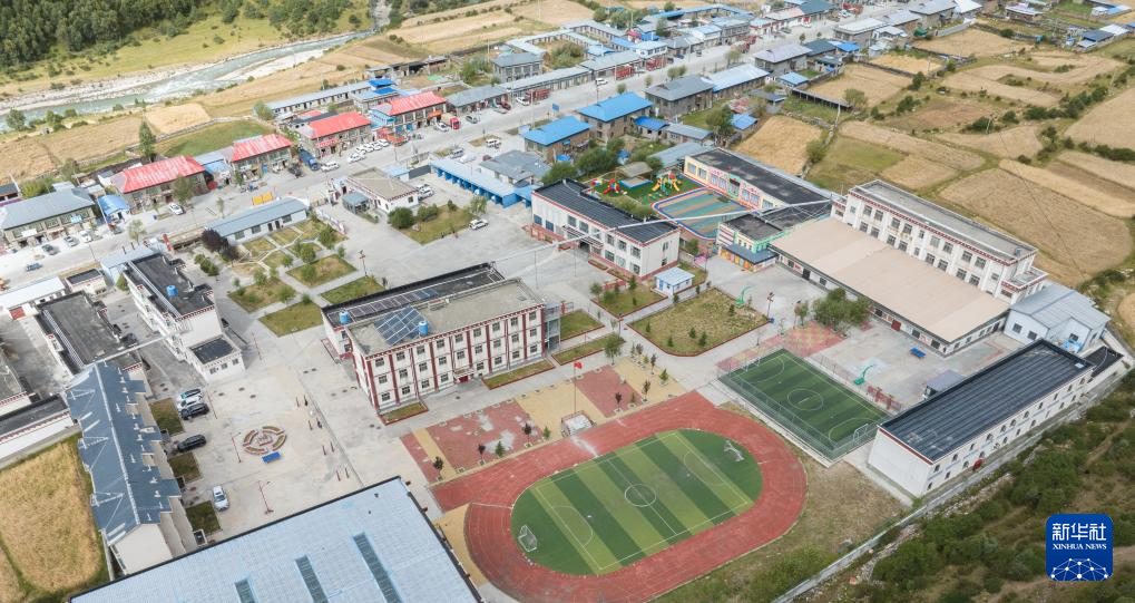 9月4日拍攝的娘蒲鄉(xiāng)中心小學(xué)(無(wú)人機(jī)照片)。新華社記者 晉美多吉 攝