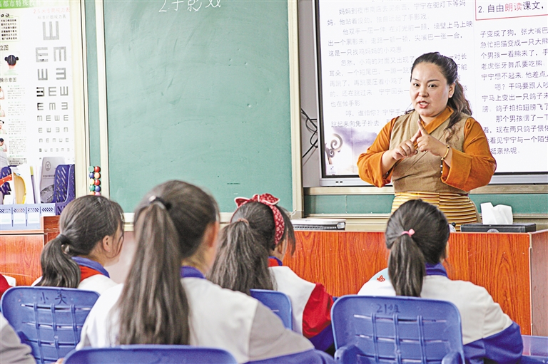 在昌都市特殊學(xué)校的課堂上,有一位老師以她獨(dú)特的方式詮釋著教育的意義。她就是澤巴卓嘎,一位被孩子們親切稱為“心靈引路人”的特殊學(xué)校教師。課堂上,她像一位舞者,優(yōu)雅靈動(dòng),用手語與聽障的孩子們交流,仿佛在傳遞一曲無聲的樂章。