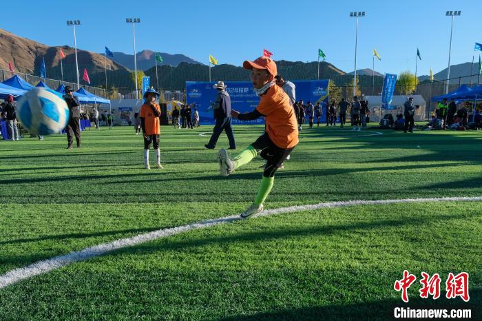足球運動在拉薩擁有廣泛的基礎(chǔ),圖為10月26日下午,一群孩子在2024拉薩“村超”足球聯(lián)賽現(xiàn)場練習(xí)射門。中新社記者 江飛波 攝