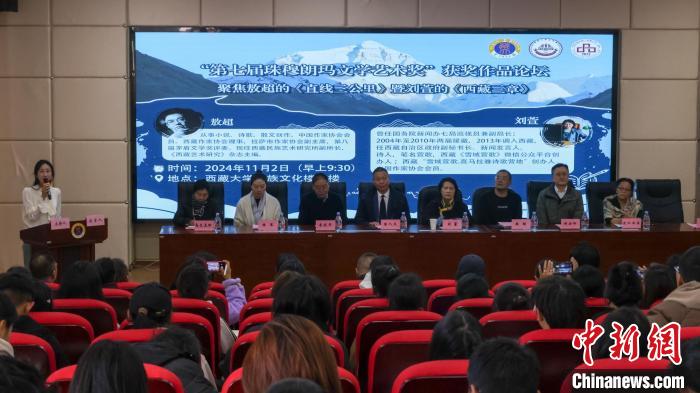 11月2日,西藏大學(xué)文學(xué)院主辦第七屆珠穆朗瑪文學(xué)藝術(shù)獎獲獎作品論壇,此次論壇聚焦敖超長篇小說《直線三公里》以及劉萱詩集《西藏三章》,作家、詩人和文學(xué)評論家以及讀者現(xiàn)場交流對話,了解創(chuàng)作經(jīng)歷、創(chuàng)作過程等。