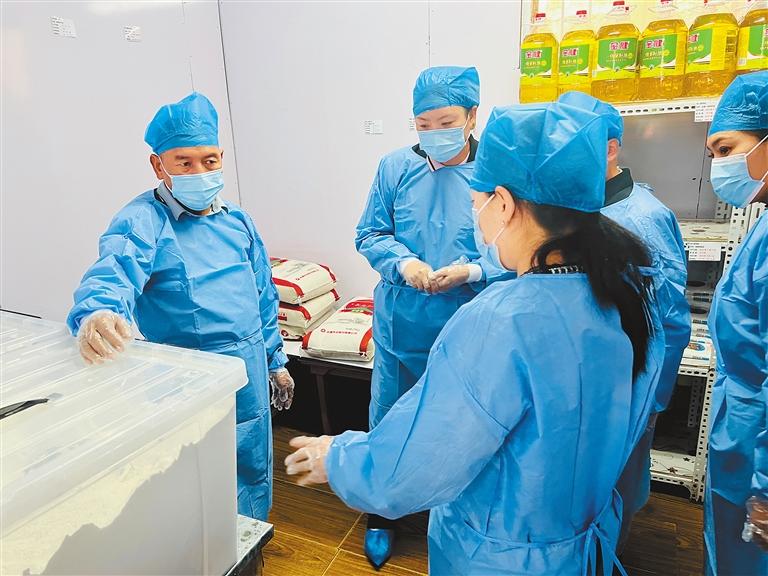 圖為拉薩市市場監(jiān)管局執(zhí)法人員在學校食堂倉庫進行檢查。記者 央金 攝