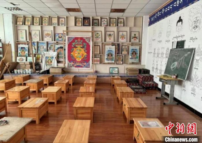 圖為碌曲縣藏族中學(xué)唐卡教室內(nèi)景。臧赫 攝