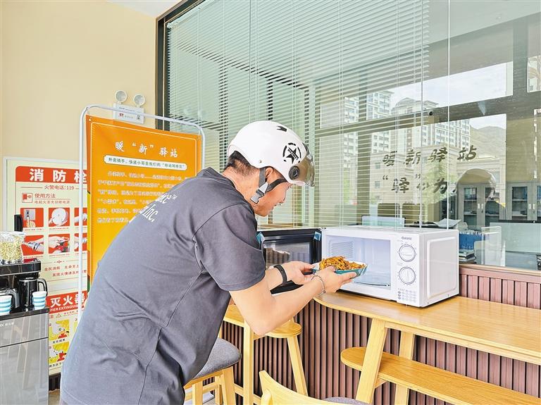 圖為快遞員利用驛站微波爐熱飯。記者 武沛濤 攝