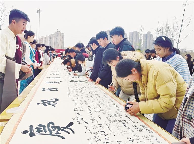 當(dāng)日清晨,一幅60米長的潔白卷軸徐徐鋪展,上書“雪域高原一甲子滄桑巨變 渭水河畔六十春立德樹人”,歌頌了西藏自治區(qū)成立60年來的輝煌成就,也表達(dá)了學(xué)校60余載為黨育人、為國育才的初心。學(xué)校領(lǐng)導(dǎo)、離退休干部、教職工、學(xué)生代表齊聚渭城校區(qū),鄭重地在長卷上簽下自己的姓名,每一筆都蘊含著對黨的無限感恩、對祖國的無限熱愛和對西藏的無限祝福。