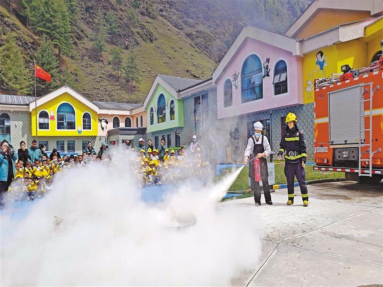 亞東縣消防救援大隊(duì)在亞東縣雙語幼兒園組織開展消防安全演練。