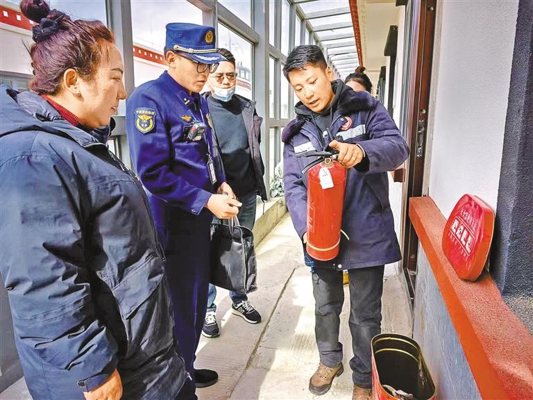 昂仁縣消防救援大隊(duì)消防宣傳員聯(lián)合民政部門走進(jìn)轄區(qū)集中供養(yǎng)服務(wù)中心排查消防安全隱患。