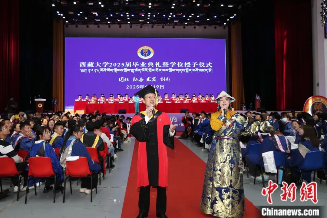 圖為在西藏大學畢業(yè)典禮上師生合唱《珠穆朗瑪》。西藏大學供圖