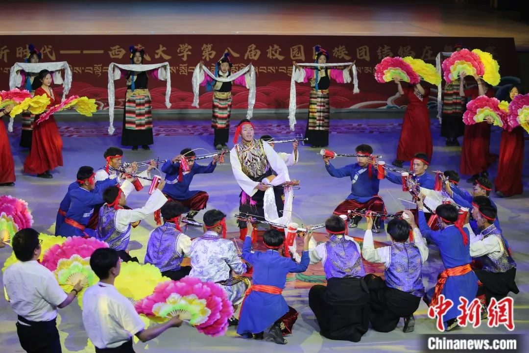 圖為2024年,西藏大學榮獲全國第七屆大學生藝術展演群舞組“一等獎”及“最佳創(chuàng)作獎”的舞蹈《甲諧·古韻》表演現場。西藏大學供圖