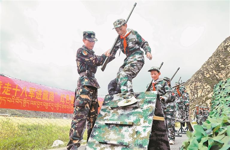 圖為學(xué)生在體驗(yàn)跨障礙物訓(xùn)練。記者 格桑倫珠 攝