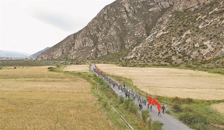 圖為學(xué)生在重走一段十八軍進(jìn)藏路。記者 格桑倫珠 攝