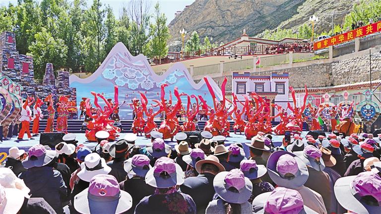當(dāng)天早上,還不等開(kāi)幕式文藝演出開(kāi)始,洛扎縣文化廣場(chǎng)上早已人潮涌動(dòng)、熱鬧非凡。人們身著節(jié)日盛裝,互致問(wèn)候、笑靨如花。