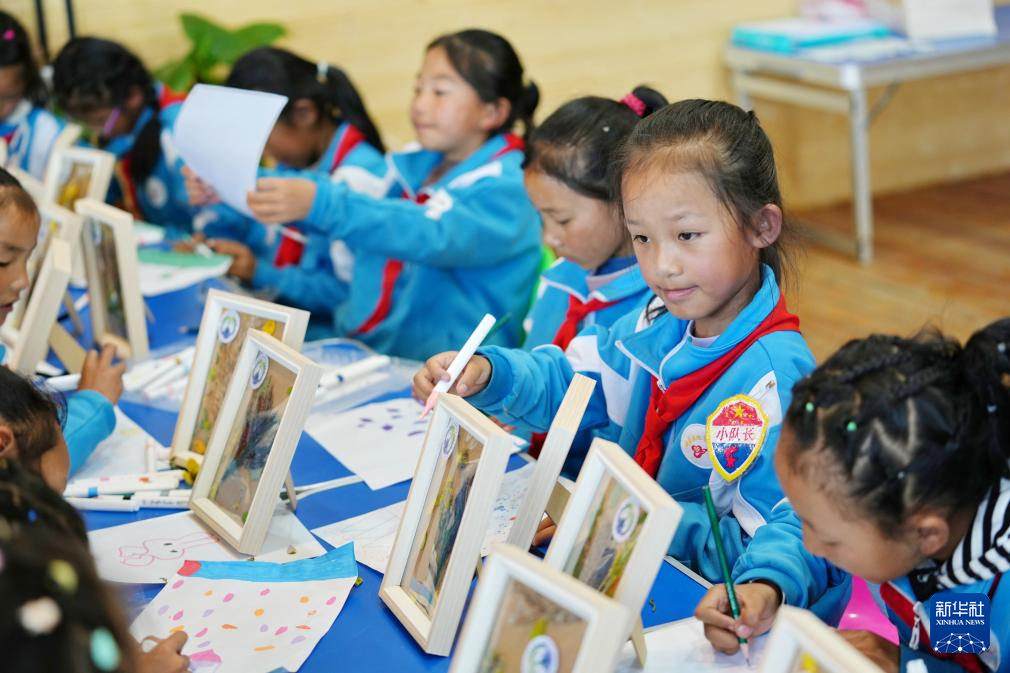 8月15日,拉魯小學(xué)的學(xué)生在拉魯濕地國家級自然保護(hù)區(qū)管理局科普小教室里進(jìn)行生態(tài)主題繪畫。新華社記者 張汝鋒 攝 ??