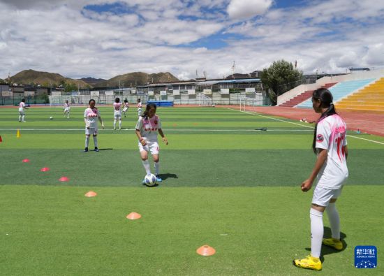 在西藏日喀則市上海實(shí)驗(yàn)學(xué)校,“珠峰雪鷹”女子足球隊(duì)隊(duì)員們在操場上訓(xùn)練(9月3日攝)。新華社記者 丁汀 攝