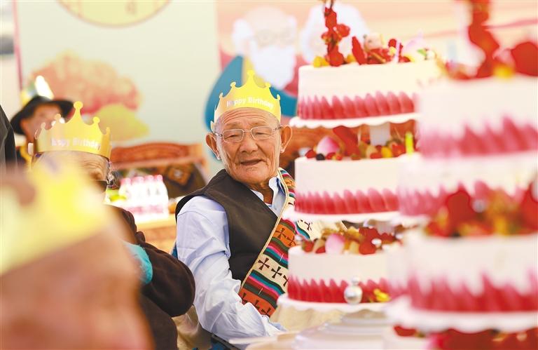 圖為拉薩市墨竹工卡縣民政局和退役軍人事務(wù)局舉行“我們的節(jié)日·重陽”主題活動,現(xiàn)場為老人們集體過生日。 記者 唐斌 本報通訊員 洛克 攝
