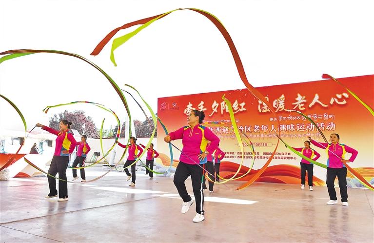圖為2024年西藏自治區(qū)“牽手夕陽紅 溫暖老人心”老年人趣味運動活動現(xiàn)場。 記者 唐斌 攝