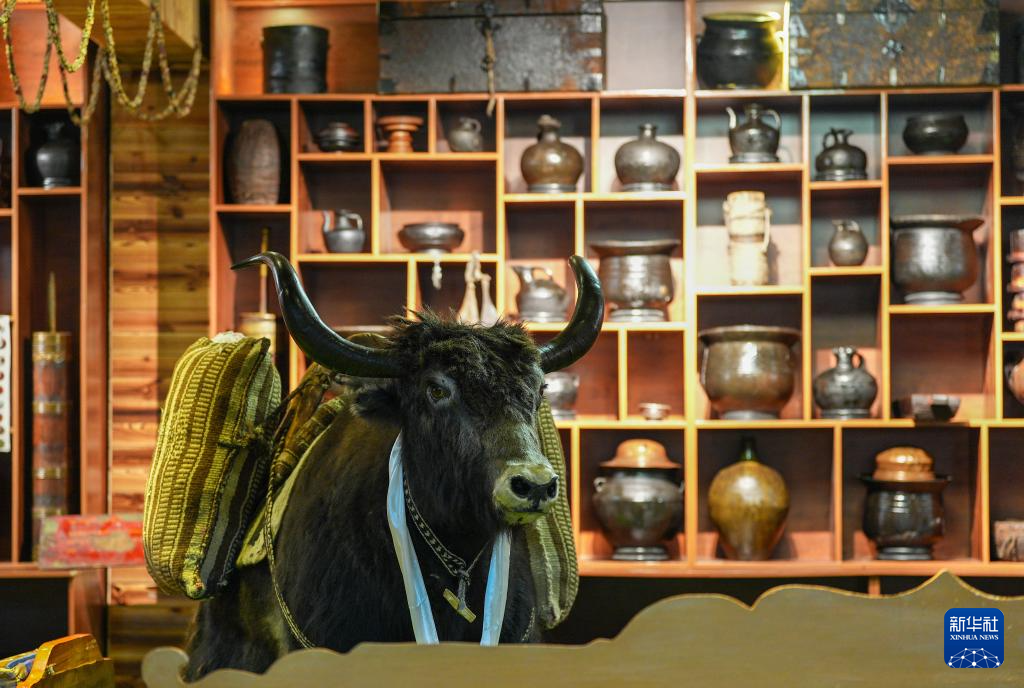 茶館主人珠珠將藏式茶館與民俗陳列方式相結(jié)合,讓顧客在品嘗美食的同時(shí),沉浸式體驗(yàn)民俗文化。茶館四周和過(guò)道上擺滿700余種3000多件西藏民俗物件,有給牛犢喂奶的牛角奶瓶、火柴盒大小的便攜酥油盒、防沙塵和雪盲的牦牛毛墨鏡等。牧民生產(chǎn)生活用具幾乎都能在這里找到,獨(dú)具風(fēng)格的茶館儼然成為一座藏北游牧文化“博物館”。??