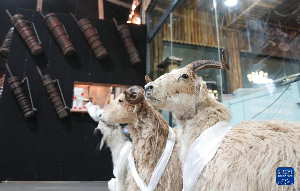 當(dāng)?shù)孛袼讓<邑暡悸逋凇澳寥藢殠?kù)”藏式茶館展示擠羊奶用的木桶(2月13日攝)。新華社記者 晉美多吉 攝??