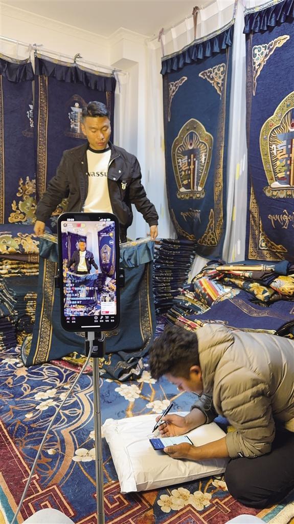 此后,為提升直播效果,格桑平措團(tuán)隊認(rèn)真總結(jié)經(jīng)驗教訓(xùn),不斷學(xué)習(xí)直播技巧,深入研究產(chǎn)品賣點,從吸引觀眾、介紹產(chǎn)品到處理售后問題,每個環(huán)節(jié)都認(rèn)真鉆研。同時,他們精心策劃每一場直播,不僅詳細(xì)介紹產(chǎn)品,還講述產(chǎn)品背后的文化故事,力求講解生動有趣,吸引了不少粉絲關(guān)注。在一次次的嘗試和努力下,藏式門簾在電商平臺上逐漸打開知名度,銷量穩(wěn)步增長,突破了2000單。面對取得的銷售成績,格桑平措也在不斷思考:“直播帶貨不僅拓寬了產(chǎn)品銷路,更重要的是,通過直播我們能與消費(fèi)者實時互動,了解他們的需求和反饋,從而持續(xù)優(yōu)化產(chǎn)品和服務(wù),讓我們的創(chuàng)業(yè)之路走得更穩(wěn)?!背辈ж浲猓裆F酱雸F(tuán)隊還借助短視頻平臺和社交媒體平臺,發(fā)布產(chǎn)品信息,制作精美的宣傳視頻,吸引了更多潛在客戶的目光。
