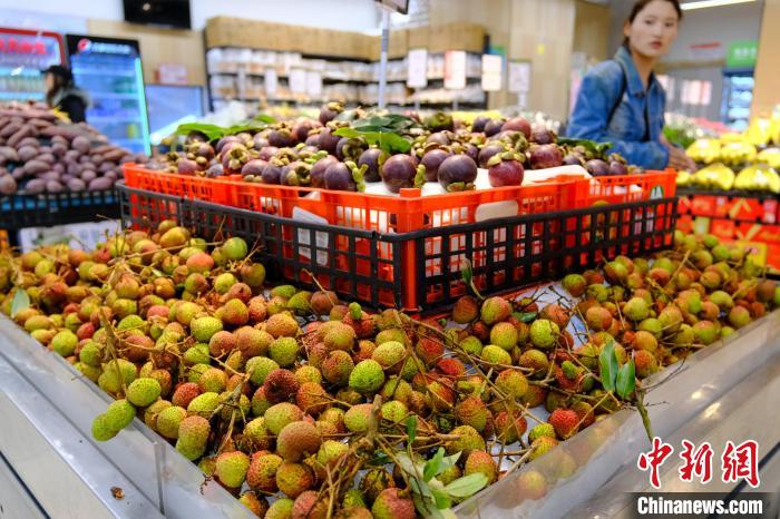 5月27日,西藏拉薩一連鎖超市銷售來(lái)自海南的“妃子笑”荔枝。中新社記者 江飛波 攝