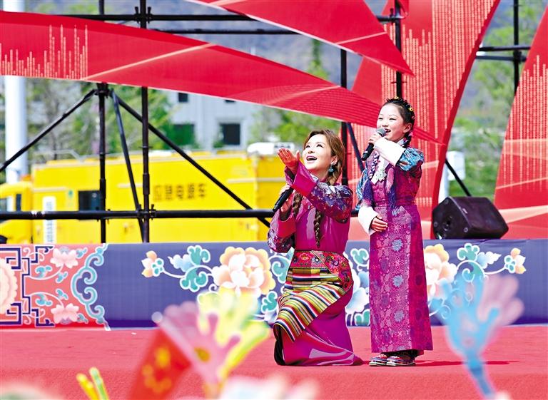 歌手平安與西藏珠峰少年合唱團帶來歌曲《我愛你中國》。 (其余圖片均由記者 唐斌 白瑪澤旺 王敏 丹增群培 旦增蘭澤 攝)