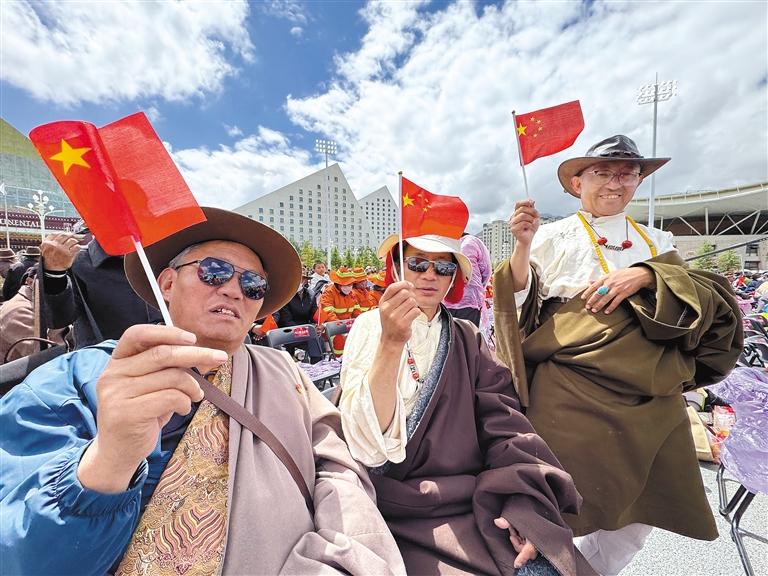 演出中,不同民族的文藝志愿者齊聚一堂。漢族、藏族、蒙古族、彝族等各民族藝術家攜手合作,用藝術搭建起溝通的橋梁。他們用歌聲、舞蹈、相聲、朗誦等多種藝術形式,深情歌頌新時代黨的治藏方略,生動展現(xiàn)西藏自治區(qū)成立60年來的滄桑巨變,傳遞民族團結的深厚情誼,讓現(xiàn)場觀眾沉浸在藝術的氛圍中。