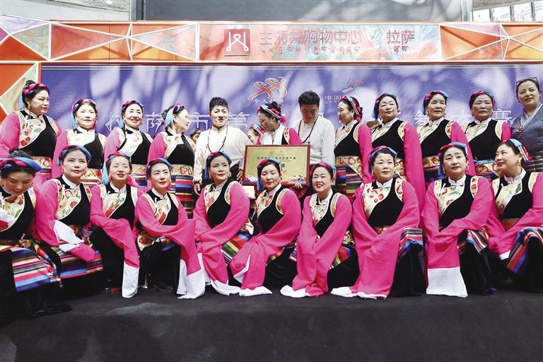 近日,拉薩市第三屆鍋莊舞大賽決賽在拉薩王府井購物中心舉行。本次大賽由拉薩市體育局主辦、拉薩布達拉文化旅游集團有限公司承辦。來自青年組和中年組的9支代表隊從預(yù)賽中脫穎而出,展開了激烈角逐。