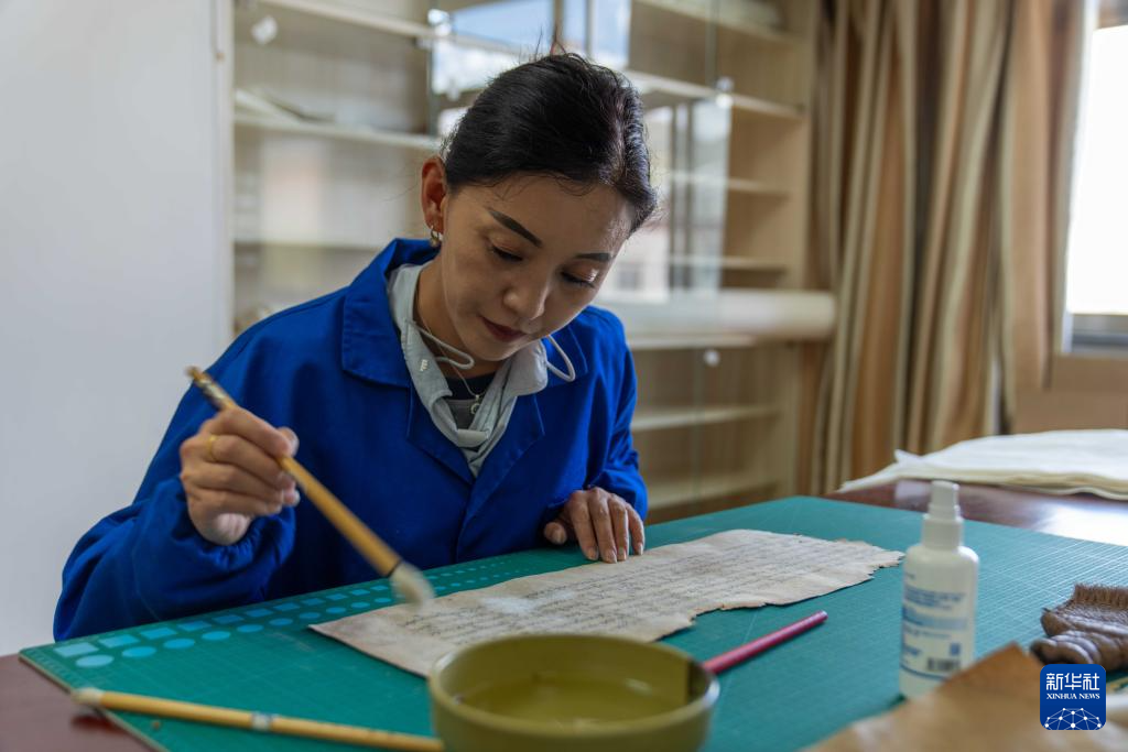 8月13日,西藏自治區(qū)古籍保護(hù)中心古籍修復(fù)員次仁央宗在對(duì)古籍進(jìn)行除霉。新華社記者 旦增尼瑪曲珠 攝 ??