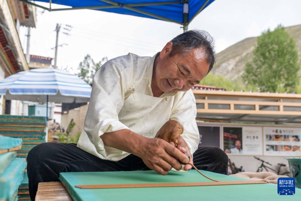這是一名傳承西藏傳統(tǒng)雕刻修復技藝的雕刻師(8月6日攝)。西藏傳統(tǒng)雕刻修復技藝入選西藏自治區(qū)級非物質(zhì)文化遺產(chǎn)代表性項目名錄。新華社記者 姜帆 攝 ??