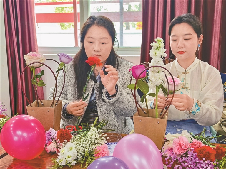 活動(dòng)現(xiàn)場花香四溢、暖意融融。花藝?yán)蠋焽@花材識(shí)別、修剪技巧、色彩搭配等進(jìn)行細(xì)致講解與示范,手把手指導(dǎo)大家選材、剪枝、定形、點(diǎn)綴。大家在花香中舒緩壓力、陶冶情操,在互動(dòng)中增進(jìn)情誼、凝聚共識(shí),充分展現(xiàn)了新時(shí)代女性自信優(yōu)雅、積極向上的精神風(fēng)貌。