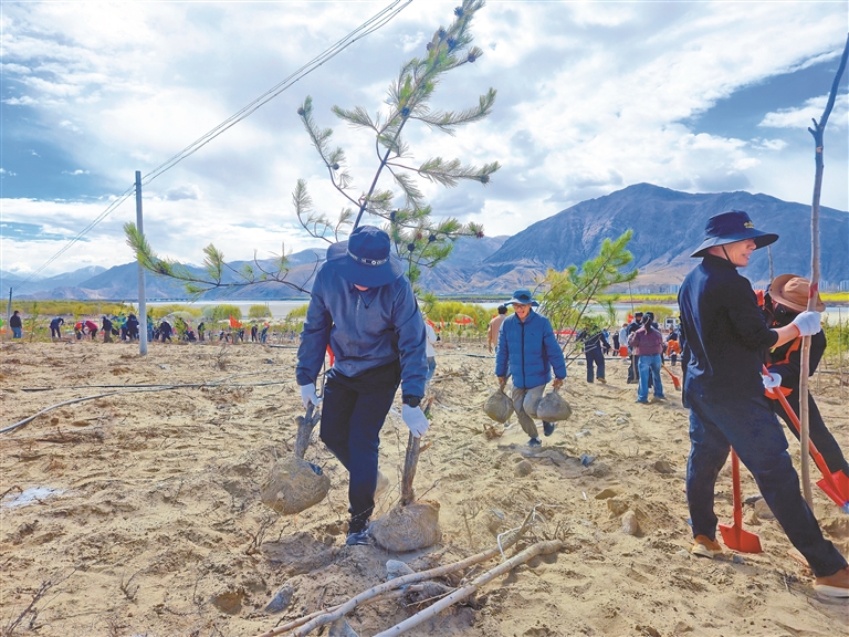 春風拂高原,植樹正當時。連日來,西藏各地搶抓春季造林黃金期開展義務植樹活動,以實際行動為雪域高原添綠增彩。