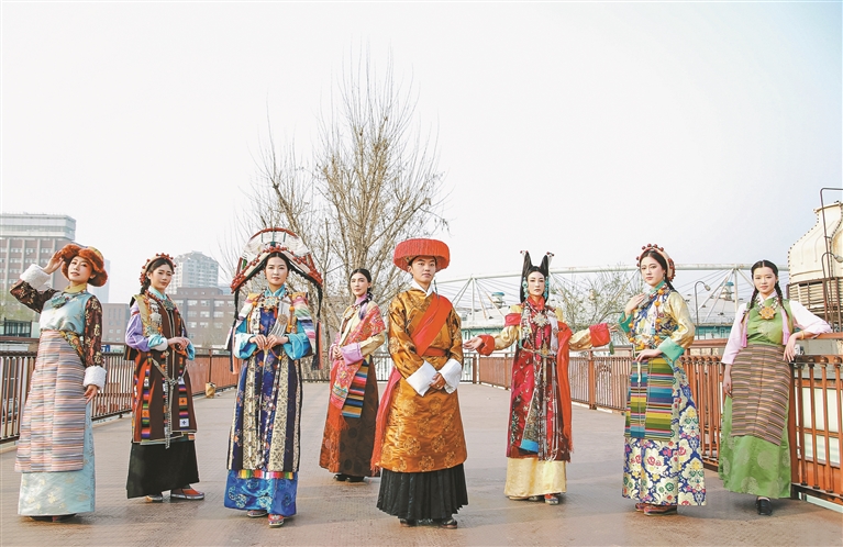 班珠丹塔(右四)設(shè)計的7套融合西藏傳統(tǒng)技藝與現(xiàn)代美學(xué)的藏裝作品。