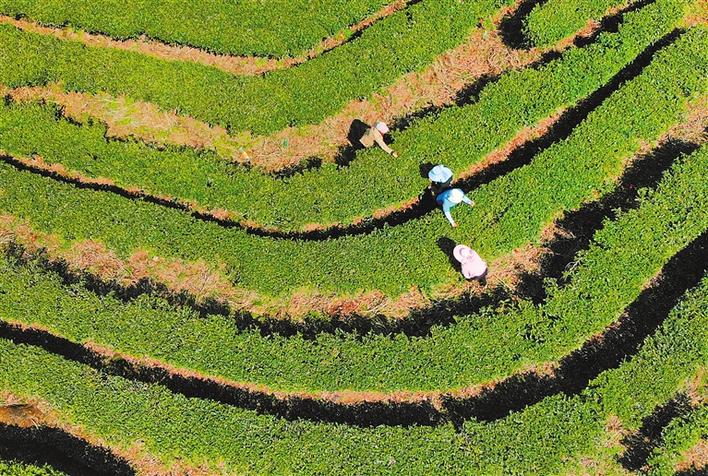 氣溫回暖,蟄伏了一個(gè)冬天的春茶早已迫不及待地吐出新綠。一片片小小的茶葉是村民手中的“金葉子”,一壟壟整齊的茶園成為當(dāng)?shù)厝罕姷摹熬蹖毰琛?,它們撐起了農(nóng)民增收、農(nóng)村富裕、脫貧攻堅(jiān)的一方天地。[詳細(xì)]