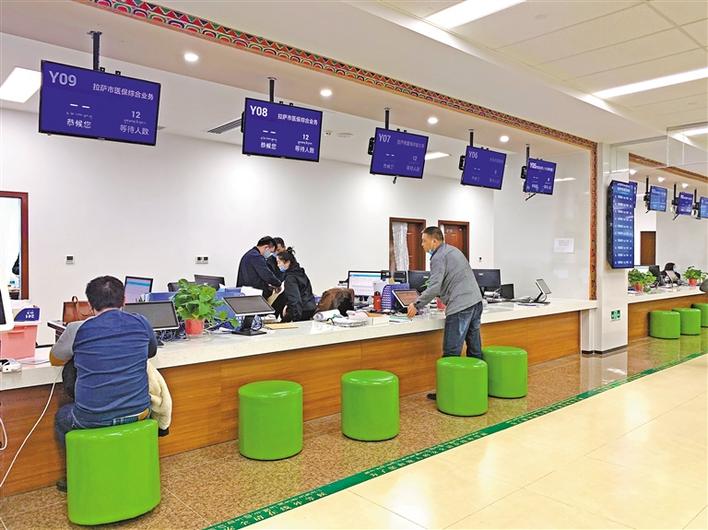 在拉薩市市民服務(wù)中心醫(yī)?!叭墶狈?wù)窗口,市民在辦理業(yè)務(wù)。記者 劉文濤 攝
