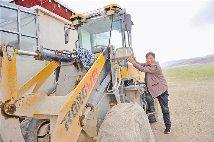 申扎縣買(mǎi)巴鄉(xiāng)扎瓊?cè)逯赂荒苋藲W珠和他的致富“伙伴”——裝載機(jī)。