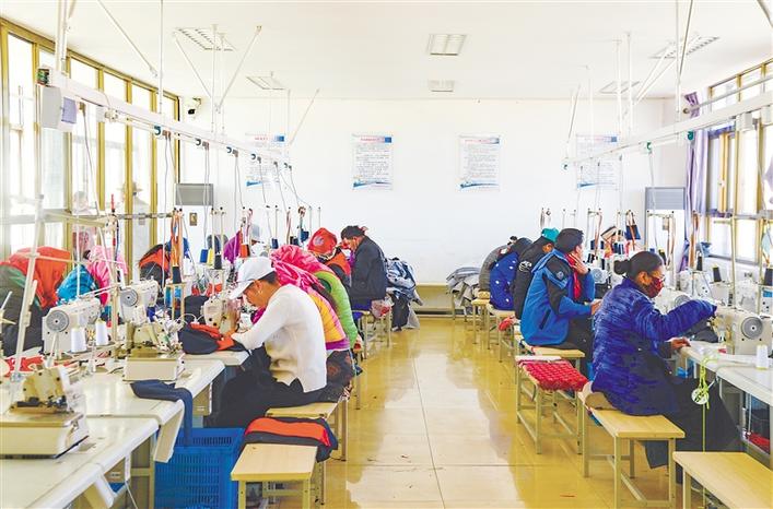 西藏阿里地區(qū)噶爾縣獅泉河鎮(zhèn)康樂新居是由5個(gè)縣區(qū)的易地扶貧搬遷戶組成的社區(qū),共714戶3152人。為鞏固脫貧攻堅(jiān)成果,方便農(nóng)牧民群眾就近就便就業(yè),增加居民收入,2017年開始,這里成立了服裝、地毯加工廠,搬遷后的農(nóng)牧民群眾既掌握了技能,也改善了生活條件。