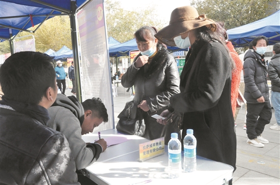 為精準(zhǔn)解決老城區(qū)低收入群體就業(yè)問題,11月16日,老城區(qū)百巷千家就業(yè)增收精準(zhǔn)對接專場招聘會(huì)在八廓商城廣場舉行。