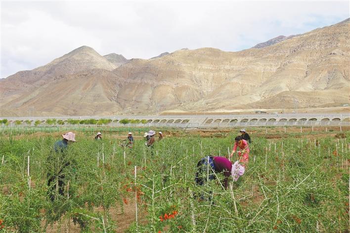 西藏日喀則白朗萬畝枸杞生態(tài)觀光產(chǎn)業(yè)園實施以來,通過土地流轉(zhuǎn)、農(nóng)牧民就業(yè)、機械租賃、種植技術(shù)培訓(xùn)、產(chǎn)業(yè)分紅等方式,有效支撐了農(nóng)牧民增收和脫貧致富。截至9月底,園區(qū)累計帶動農(nóng)牧民就近就便務(wù)工13萬人次,為利益聯(lián)結(jié)的1592名貧困人口兌現(xiàn)產(chǎn)業(yè)分紅193.75萬元。據(jù)了解,園區(qū)項目全面建成后,預(yù)計每年需要用工達37.5萬人次、長期用工500人。