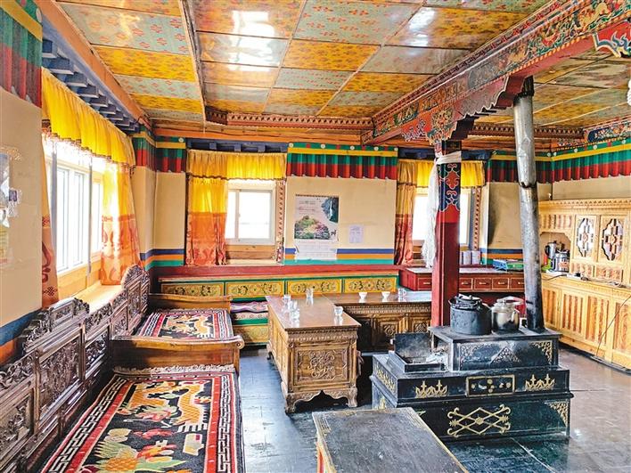 次仁玉珍今年60歲,家里有兩個(gè)女兒。走進(jìn)次仁玉珍家,干凈的小院、寬敞的房子、屋內(nèi)各式家具家電一應(yīng)俱全?!耙郧?,家里的房子又小又破,只有幾十平方米,每逢下雨,屋子還漏雨。2016年,政府幫我們翻修擴(kuò)建了房子,我們自己只出了5000元,現(xiàn)在的新房有250平方米左右?!贝笈畠捍稳恃虢鹫f(shuō)。