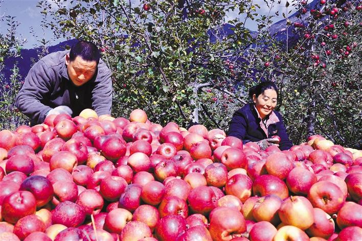 圖為近日,巴宜區(qū)珠曲登村群眾在采摘蘋(píng)果。記者 胡文 通訊員 楊志宏 攝