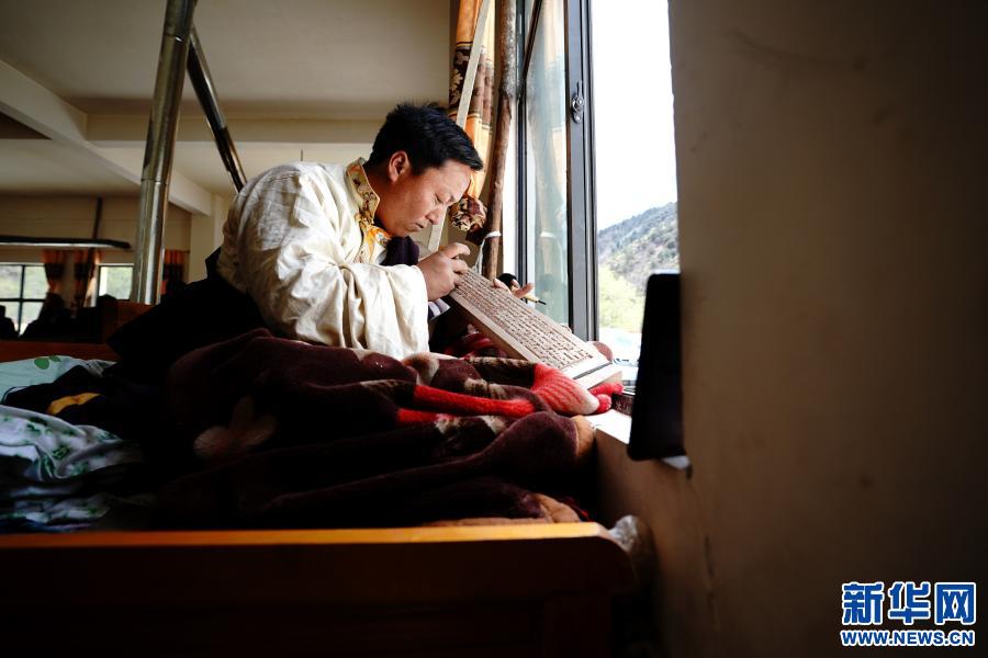 在西藏昌都市江達縣波羅鄉(xiāng)木松民族手工藝有限責任公司,波羅鄉(xiāng)村民白瑪加村在制作木刻(5月1日攝)。白瑪加村2017年開始學(xué)習波羅木刻,如今已經(jīng)出師,成為一個熟練的木刻藝人,一個月能制作6塊木刻作品,每個月有4000多元的收入。新華社記者 詹彥 攝