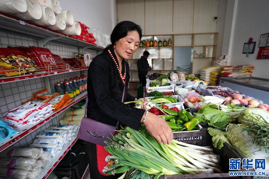 西藏昌都市丁青縣尺牘鎮(zhèn)烏巴村村民斯朗德吉在尺牘鎮(zhèn)的一家超市里打工(9月18日攝)。2018年,斯朗德吉和家人從烏巴村搬遷到尺牘鎮(zhèn)易地扶貧搬遷安置點,住進了寬敞明亮的新房子。斯朗德吉還就近在安置點附近的超市找到了工作,每個月有2000元的收入。新華社記者 詹彥 攝