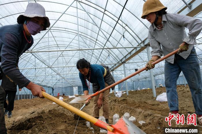圖為西藏林芝當(dāng)?shù)剞r(nóng)牧民在大棚內(nèi)勞作。 江飛波 攝