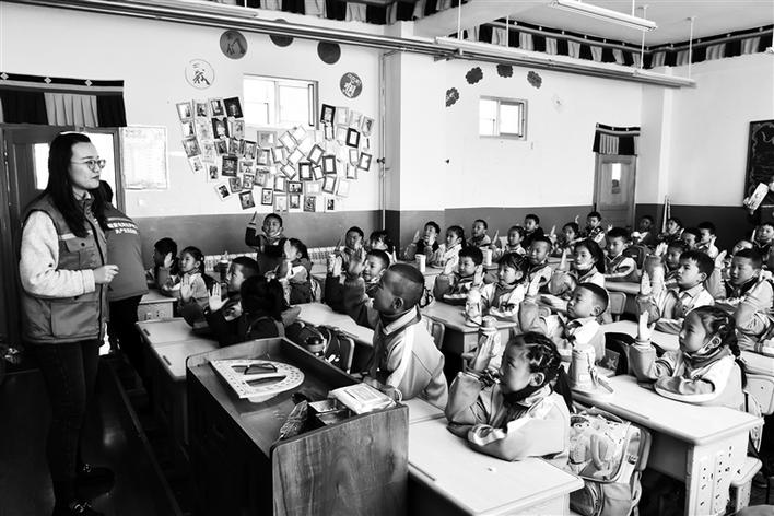 國網(wǎng)拉薩供電公司共產(chǎn)黨員服務隊入校園進行電力知識宣講。國網(wǎng)拉薩供電公司供圖