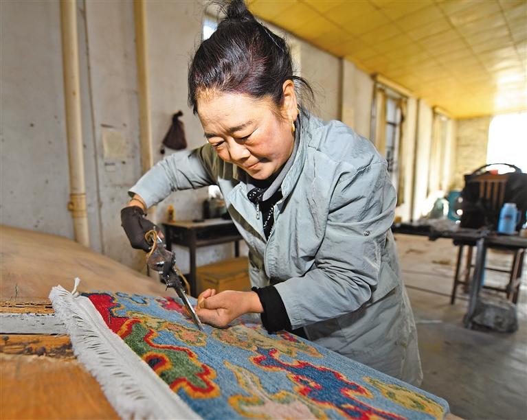 左圖為拉薩喀瓦堅手工藏毯公司工人對藏毯進行立體裁剪。[詳細]