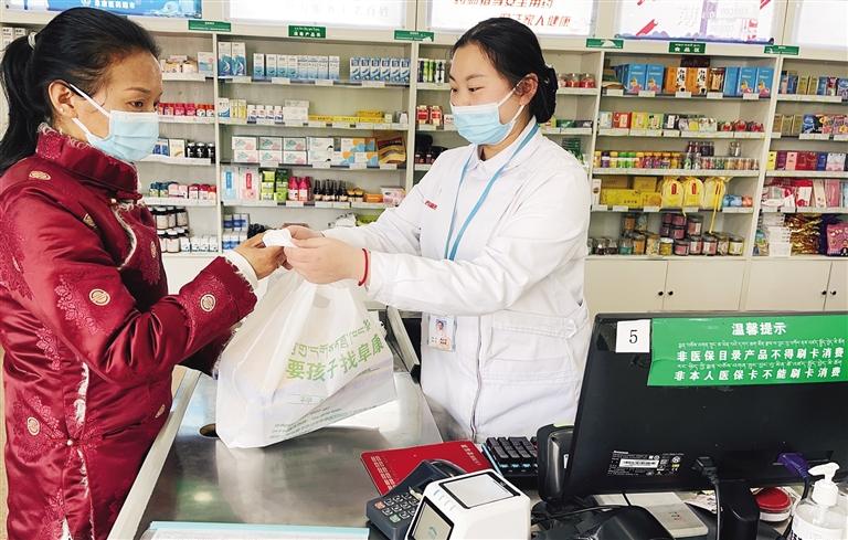 市民在定點藥店刷卡購藥。記者 趙越 攝
