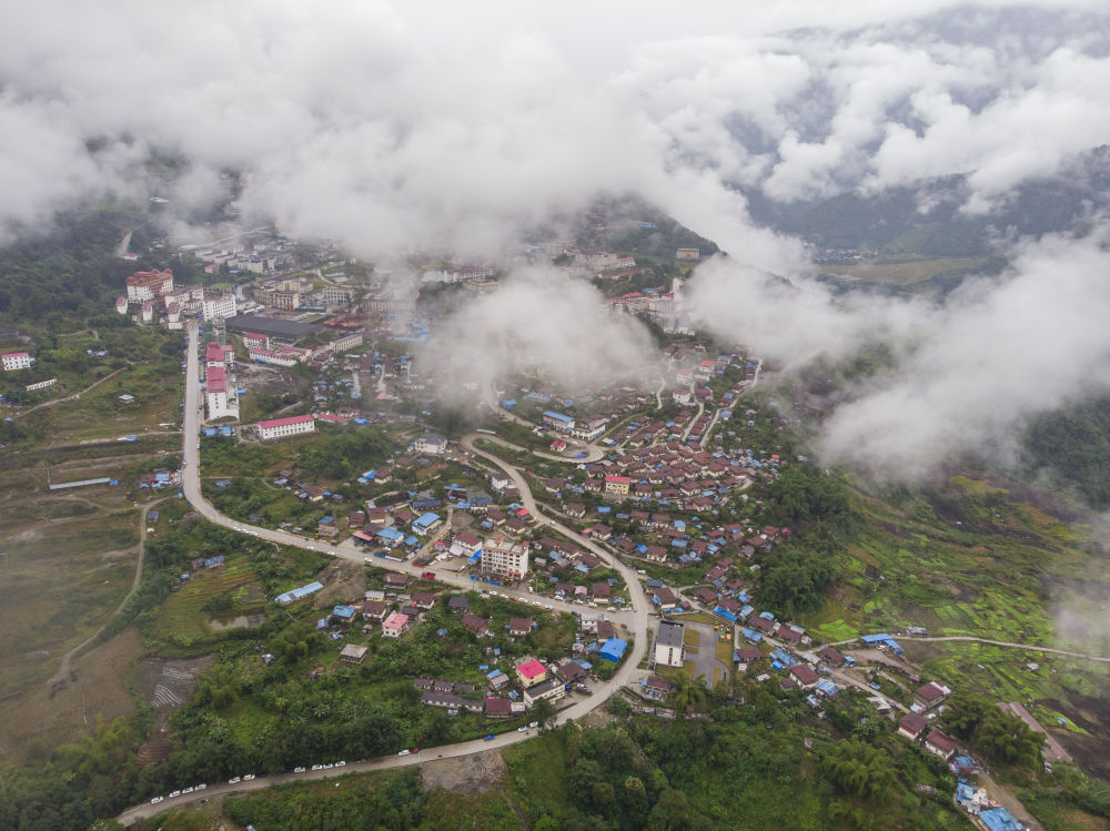 俯瞰墨脫縣城(2019年10月26日無人機拍攝)。新華社記者 孫非 攝