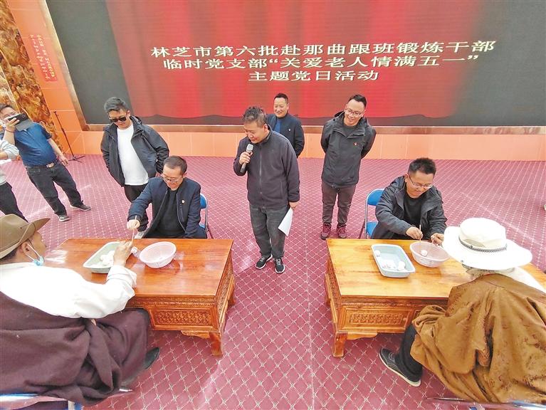 近日,林芝赴那曲跟班鍛煉小組臨時黨支部組織黨員干部前往色尼區(qū)特困人員集中供養(yǎng)中心開展關愛老人主題黨日活動?;顒又校h員干部為老人們發(fā)放慰問品、表演文藝節(jié)目,同老人們拉家常,幫老人們打掃衛(wèi)生。此次活動既是一次志愿活動,也是一次黨性鍛煉,充分展現(xiàn)了黨員干部踐行為民服務、奮發(fā)有為的時代風采,增進了干群關系。