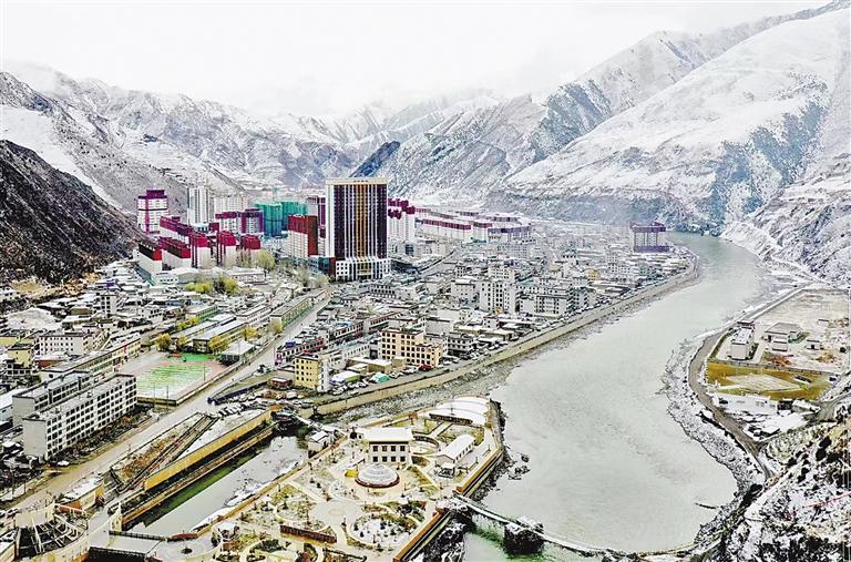 12月的藏北高原已被嚴(yán)寒籠罩,頂著風(fēng)雪,記者來到素有“藏北江南”美譽(yù)的比如縣,縣城里縱橫交錯(cuò)的柏油路、水泥路在白雪的映襯下,顯得格外開闊整潔;街道兩旁高大挺拔的樹披上了綿綿白雪,樹枝上懸掛著亮晶晶的銀條;一棟棟紅白色調(diào)搭配的房屋外墻,經(jīng)過雪水的蕩滌,反射著太陽的光輝,嶄新如初、盡顯生機(jī)……